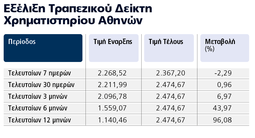 Ο χρυσός, για παράδειγμα, έχει επιστρέψει δυναμικά στο επενδυτικό προσκήνιο. Από την άλλη πλευρά, το Χρηματιστήριο Αθηνών είχε επίσης έντονη κινητικότητα, με τις τραπεζικές μετοχές να οδηγούν την άνοδο.